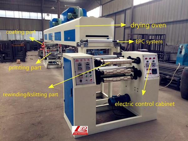 LD-500C BOPP tape coating machine includes coating part, printing part, drying part and slitting part.